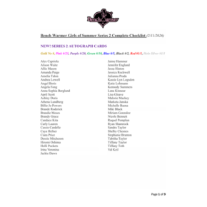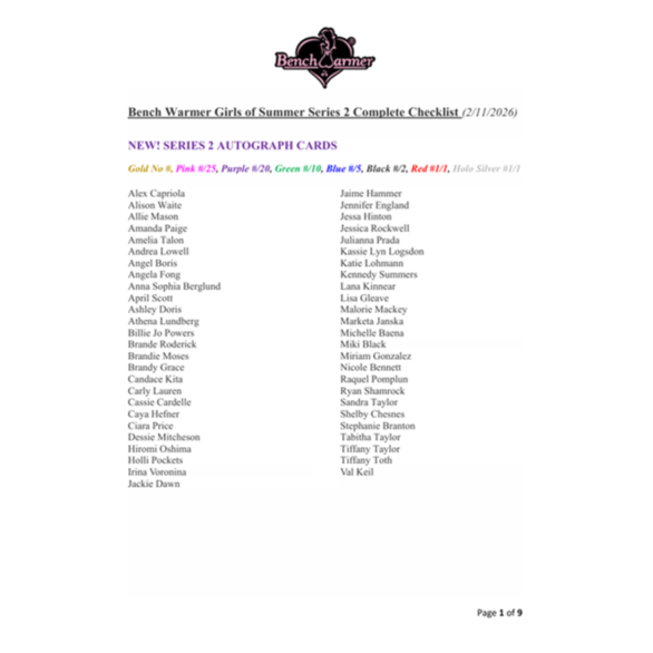 2026 Bench Warmer Girls of Summer Series 2